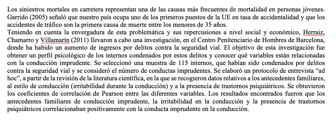 antecedentes familiares de conducción imprudente, irritabilidad en la conducción y presencia de trastornos psiquiátricos