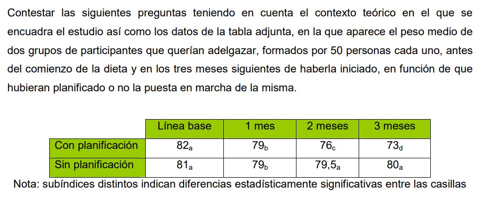 De acuerdo con los resultados, y teniendo en cuenta exclusivamente el peso de los participantes después de transcurrido 1 mes de hacer la dieta, se podría decir que:
