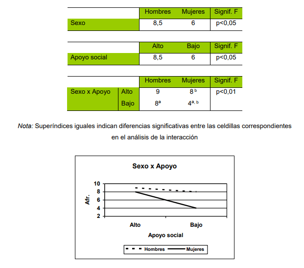 la interacción sexo x apoyo